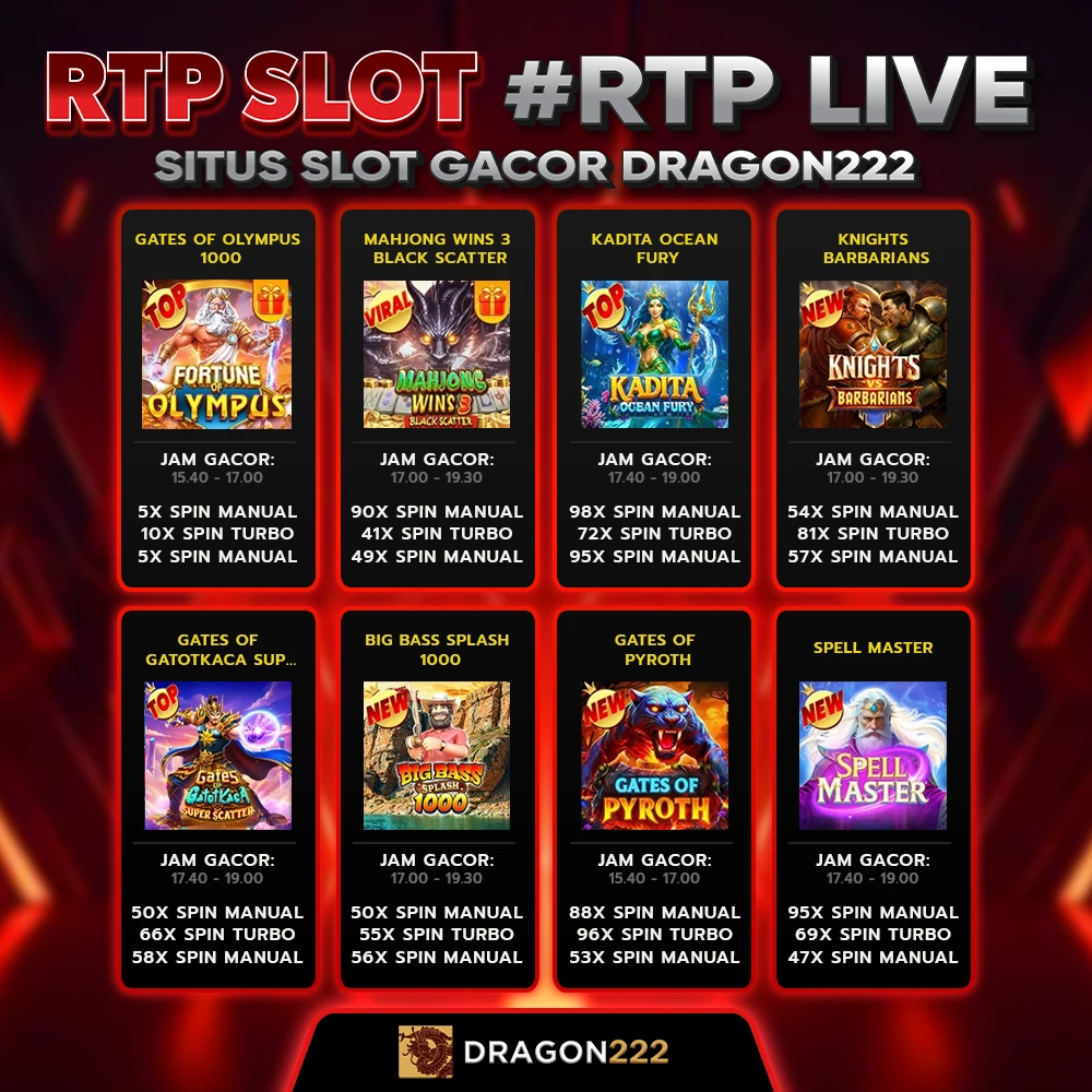 DRAGON222 menyediakan link RTP live situs slot gacor Pragmatic Play resmi dengan pola bocoran RTP slot toto 4D terakurat hari ini dengan winrate hingga 99%.